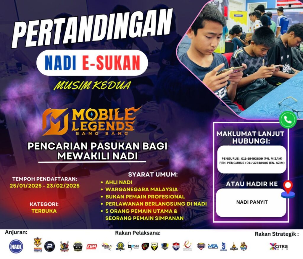 Jangan lepaskan peluang ini! Daftarkan pasukan anda sekarang dan buktikan bahawa anda adalah yang terbaik dalam Mobile Legends: Bang Bang! Mari kita cipta sejarah bersama di pentas e-sukan Malaysia!