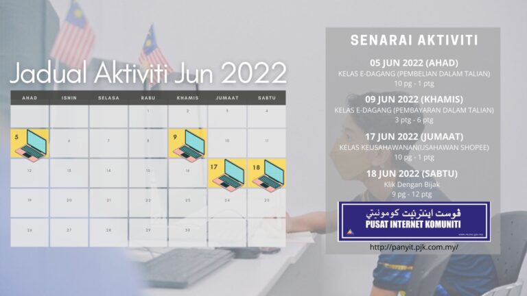 PEDI Panyit akan mengadakan beberapa kelas dan aktiviti yang menarik sepanjang bulan Jun 2022 Mereka yang berminat boleh terus menghubungi kami atau berkunjung ke PEDI Panyit. Penyertaan adalah PERCUMA. Untuk maklumat lebih lanjut sila klik pada Jadual Aktiviti Semasa di […]