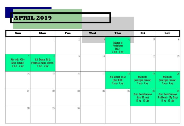 PI akan mengadakan beberapa kelas dan aktiviti yang menarik sepanjang bulan april 2019. Mereka yang berminat boleh terus menghubungi kami atau berkunjung ke PI Panyit. Penyertaan adalah PERCUMA.