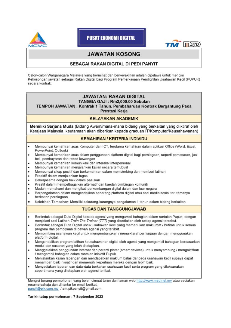???????? !Penutupan sementara operasi PEDi Panyit pada:Tarikh: 27 Disember 2023Hari: RabuCUTI MINGGUAN DAN CUTI SAKIT PETUGASPEDi akan beroperasi kembali pada:Tarikh: 28 Disember 2023Hari: KhamisHarap Maklum. Terima Kasih.Sebarang urusan, boleh hubungi: Encik Zairul (010-5707860)Puan Mizam (011-19493609)#pedipanyit#pusatekonomidigitalmalaysia