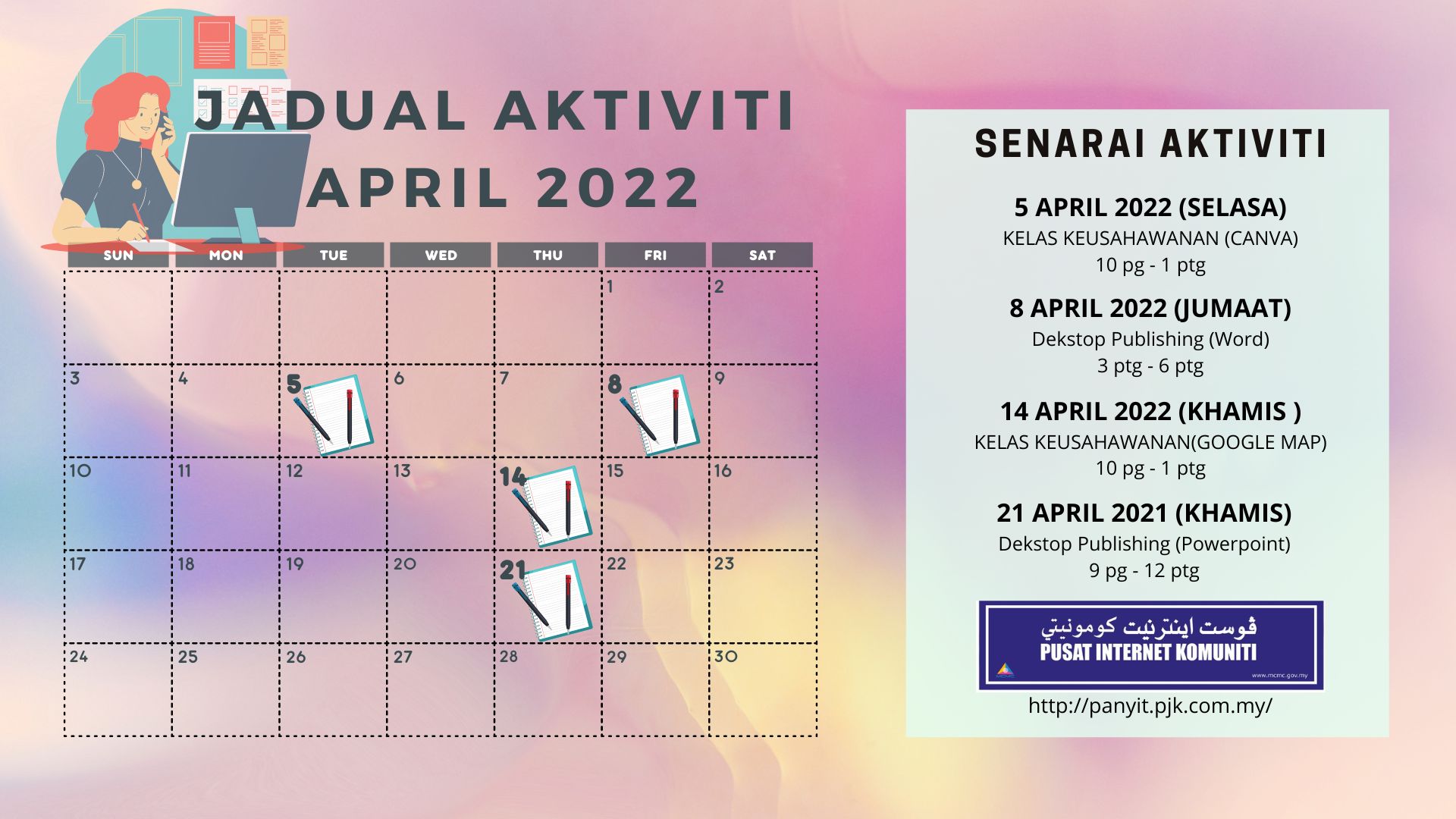 PEDI Panyit akan mengadakan beberapa kelas dan aktiviti yang menarik sepanjang bulan April 2022