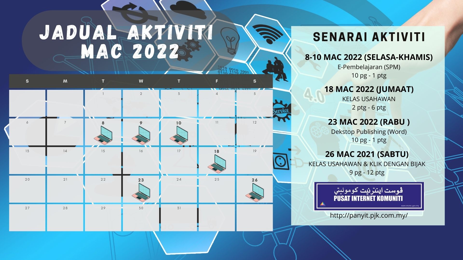 PEDI Panyit akan mengadakan beberapa kelas dan aktiviti yang menarik sepanjang bulan Mac 2022