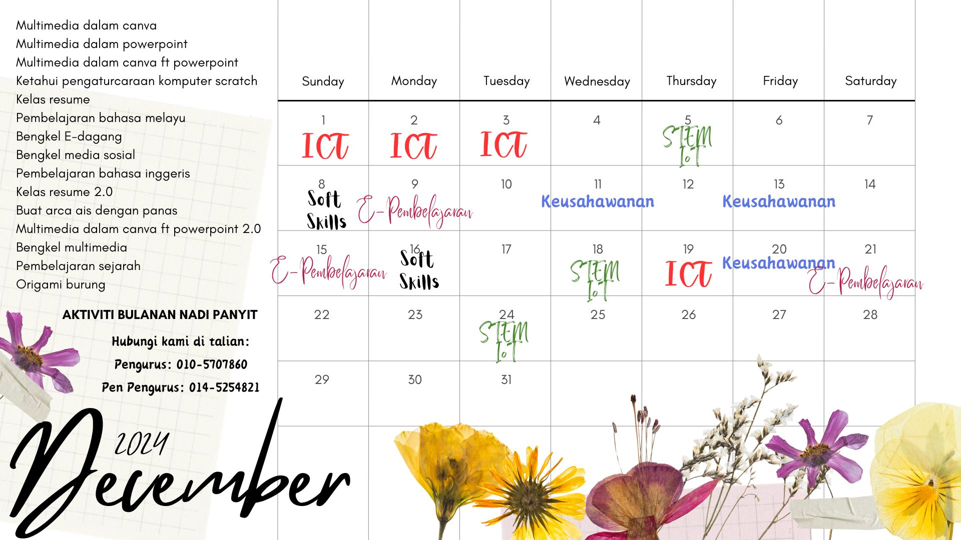 Berikut merupakan jadual perancangan aktiviti yang akan dijalankan oleh NADI Panyit bagi bulan December 2024.