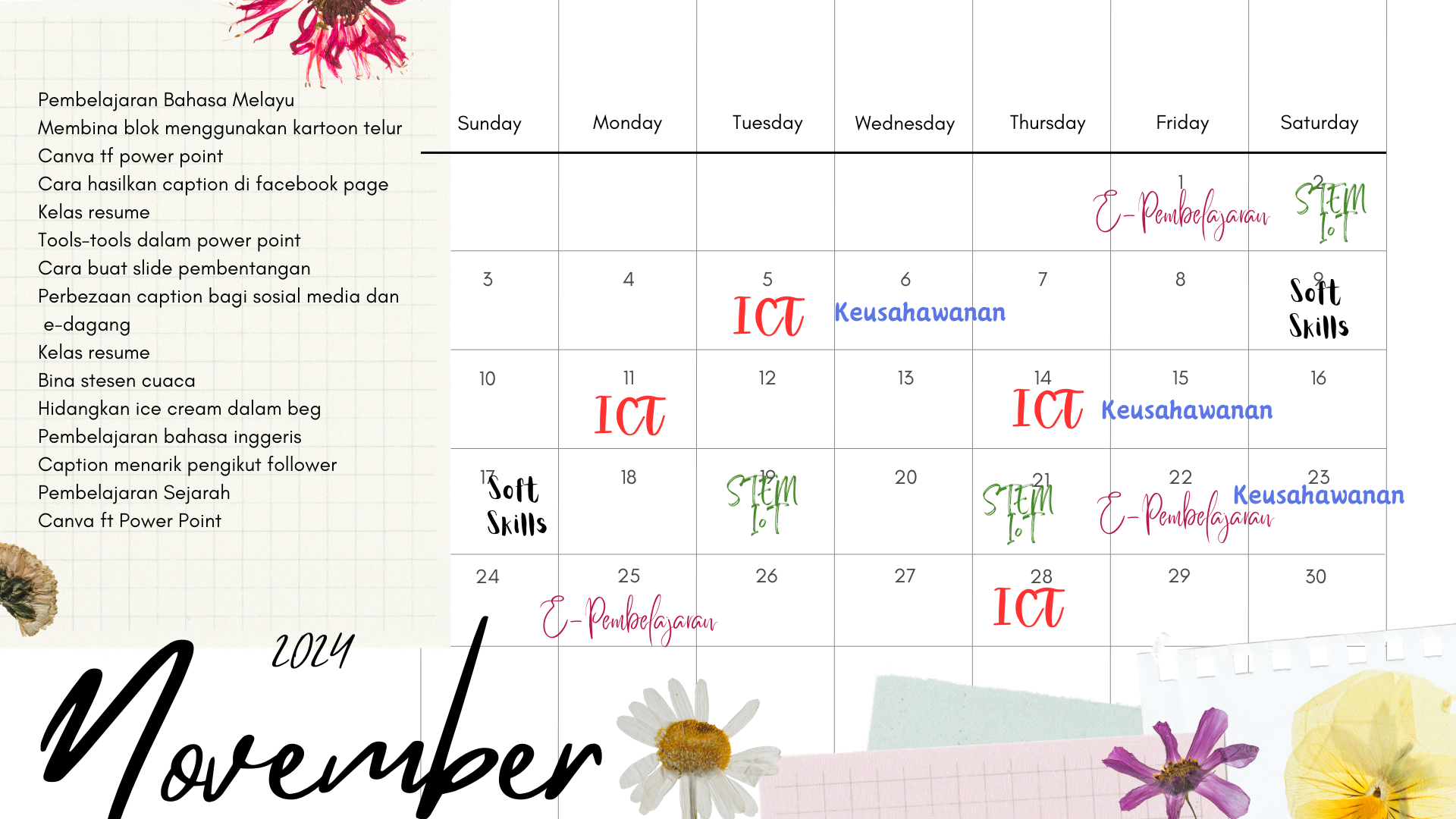 Berikut merupakan jadual perancangan aktiviti yang akan dijalankan oleh NADI Panyit bagi bulan November 2024.