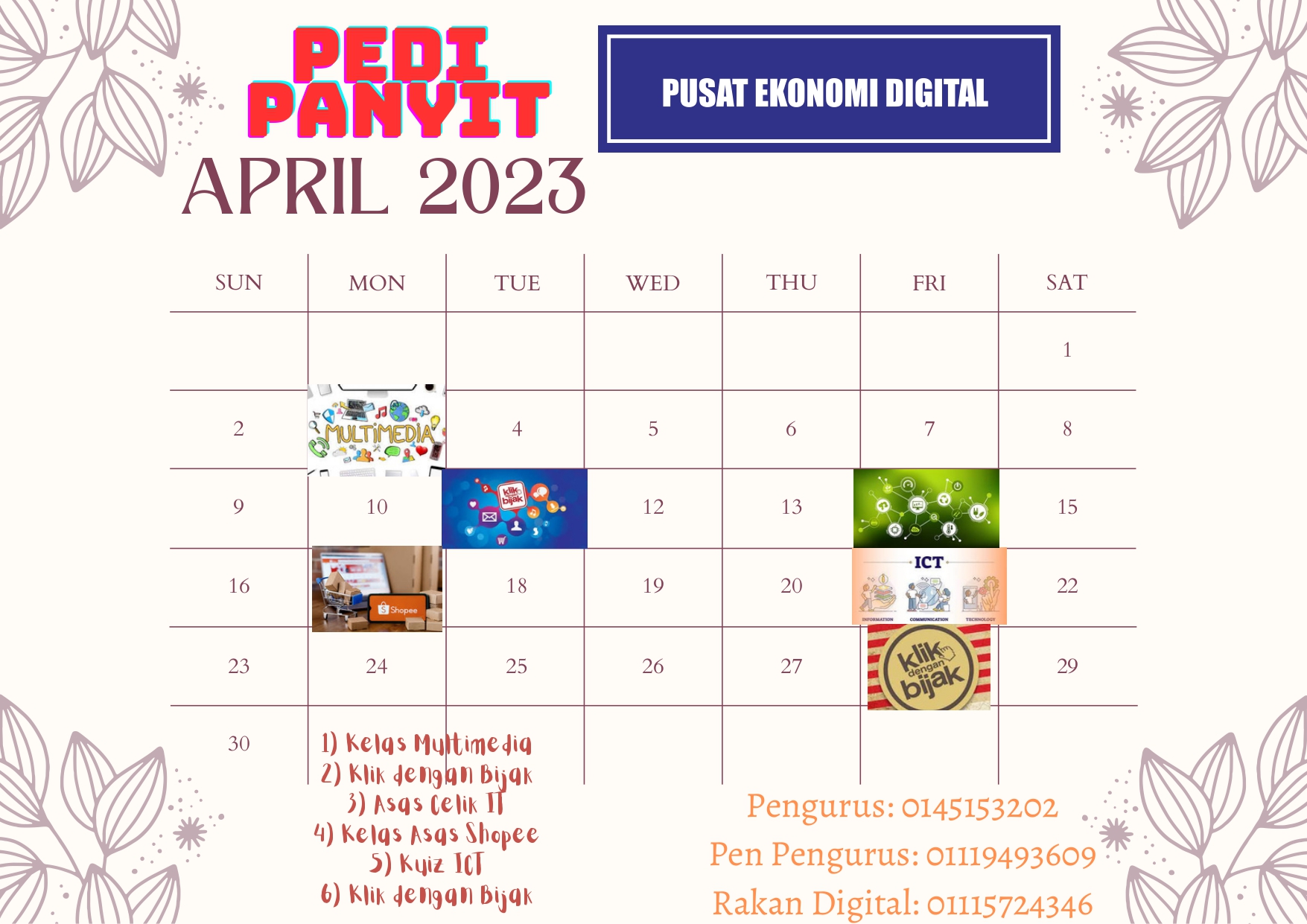 Berikut merupakan jadual perancangan aktiviti yang akan dijalankan oleh PEDi Panyit bagi bulan April 2023.