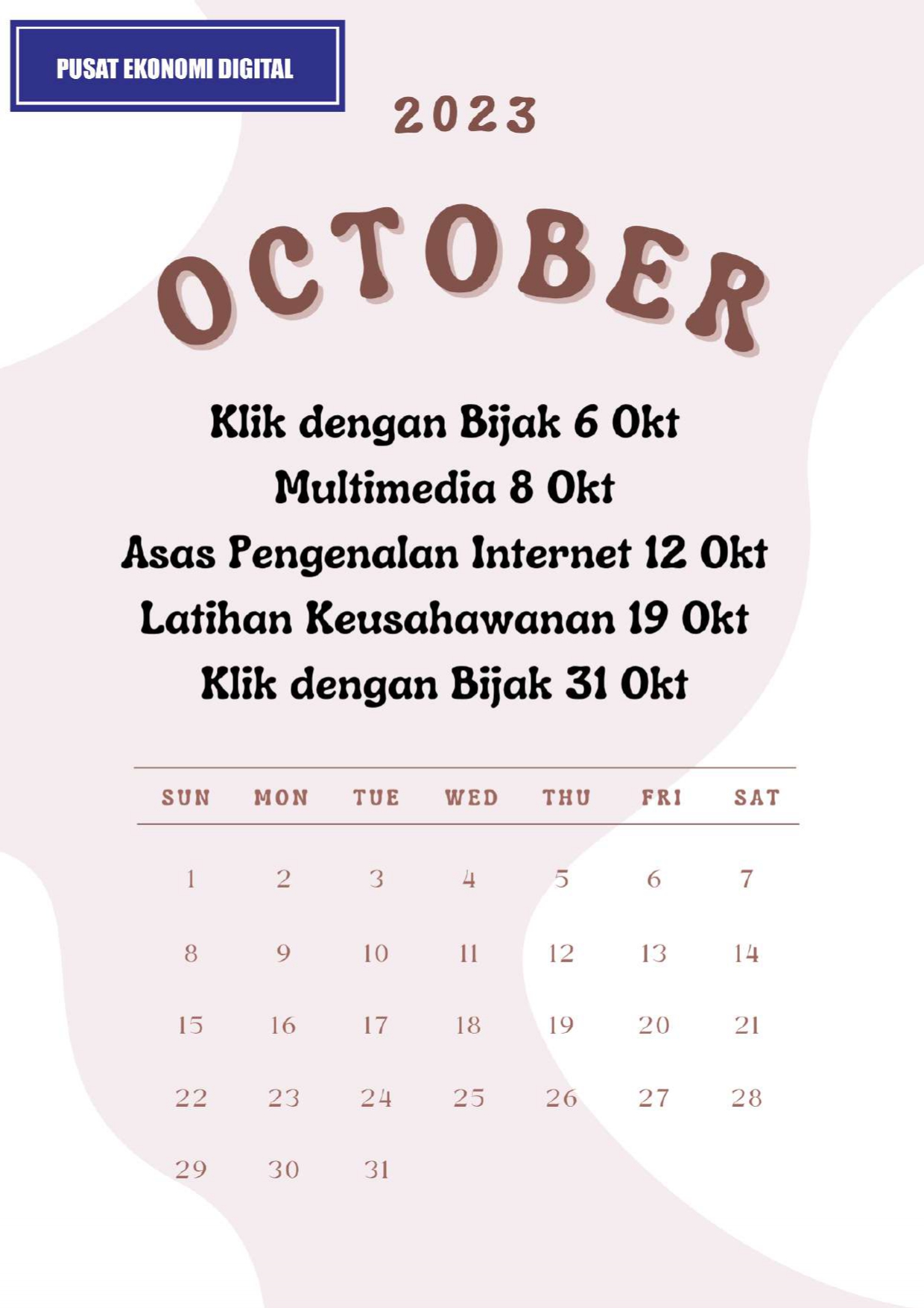 Berikut merupakan jadual perancangan aktiviti yang akan dijalankan oleh PEDi Panyit bagi bulan Oktober 2023.