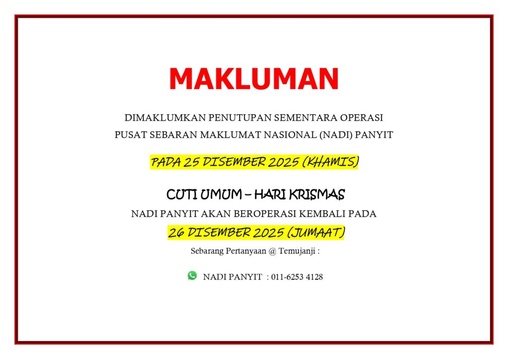 NOTIS PENUTUPAN NADI PANYIT SEMPENA CUTI UMUM – HARI KRISMAS