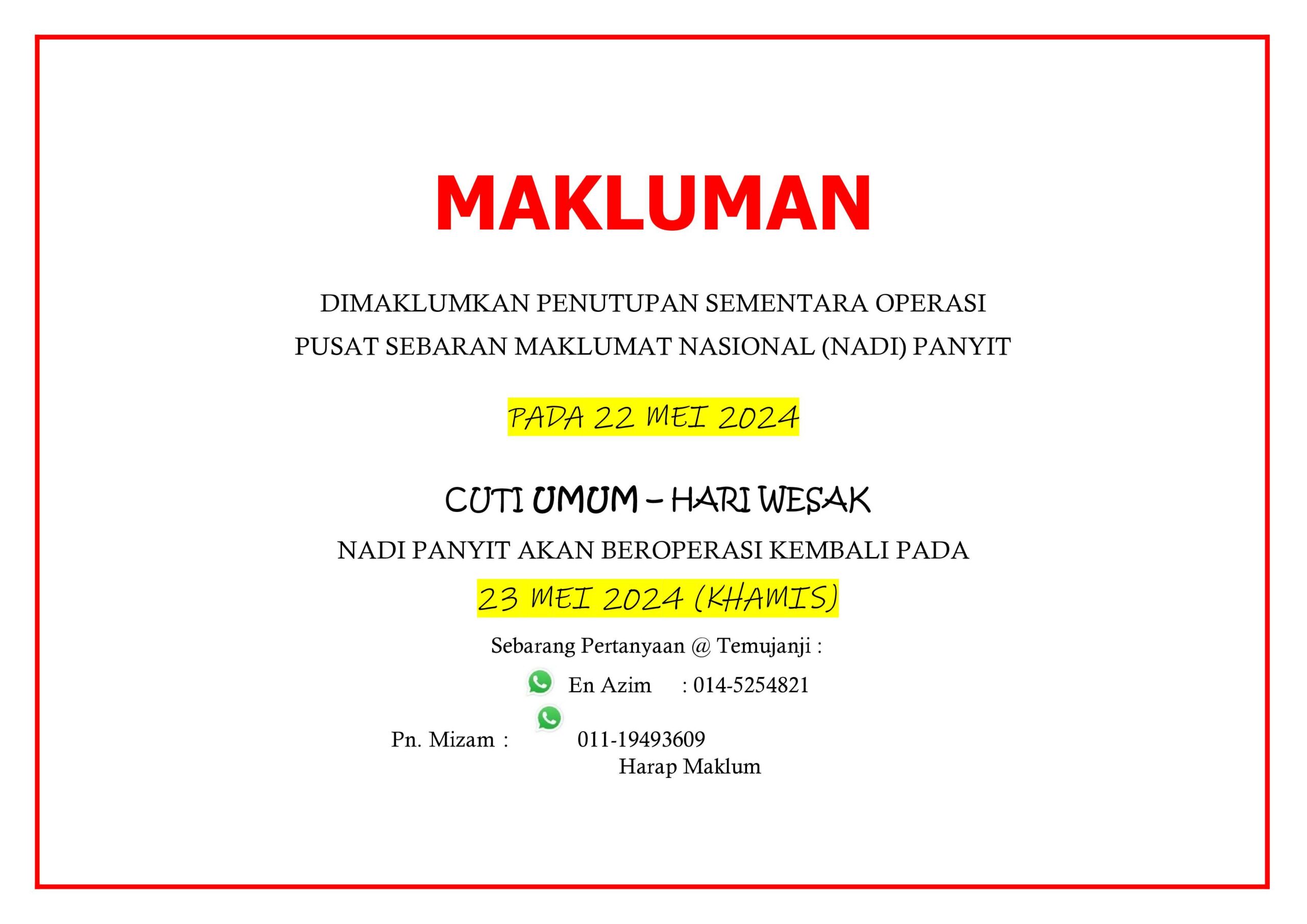 Notis Penutupan Sementara NADI Panyit