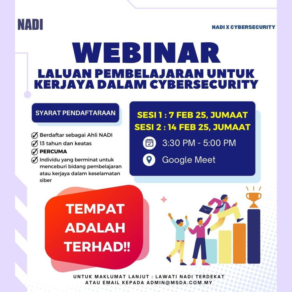 PROGRAM WEBINAR NADI x CYBERSECURITY BERTAJUK LALUAN PEMBELAJARAN UNTUK KERJAYA DALAM CYBERSECURITY